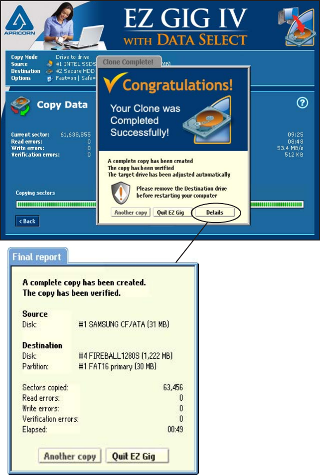 window. To get a report of the cloning process, click the “Details” button.