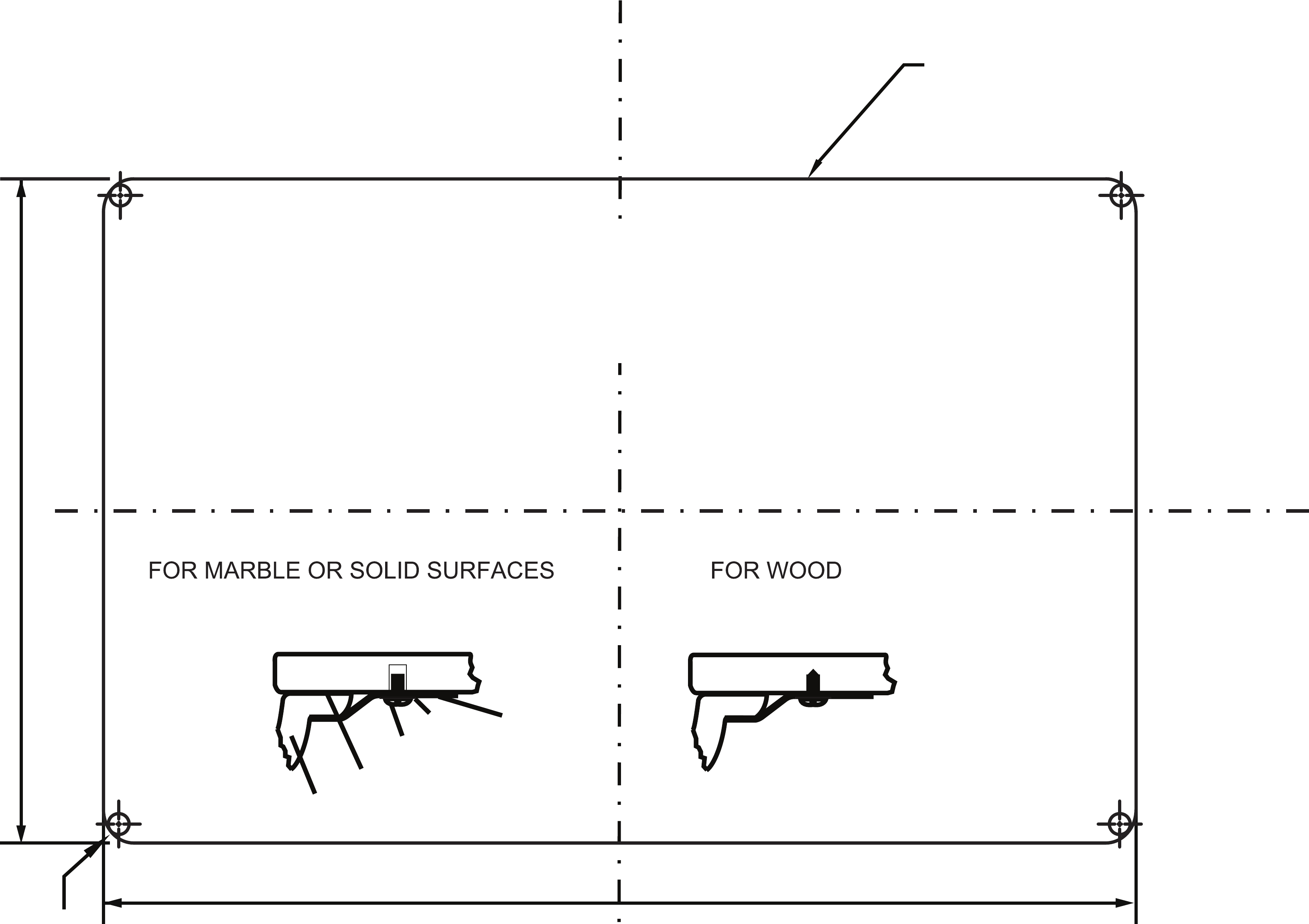 SUGGESTED COUNTERTOP CUTOUT (PROVIDES APPROXIMATELY 3/8 in. OVER RIM LIP) 11.5 in. 292 mm ANCHOR LOCATIONS ON UNDERSIDE OF COUNTERTOP (4 LOCATIONS) 17.88 in.