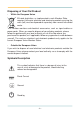 General Information 1.5.2 Function Buttons Button Description Brightness Up Press to increase brightness Brightness Down Press to decrease brightness Volume Up Press to increase speaker volume Volume Down Press to decrease speaker volume Mute Press to enable/disable sound Bluetooth Press to enable/disable Bluetooth connectivity Wi-Fi Press to enable/disable Wi-Fi connectivity Touch Press to lock/unlock the touch screen. 1.5.