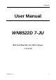 User Manual Chapter 1 Introduction 1. Introduction WN8522D 7-JU is a dual band wireless 802.11n USB Adapter which enables wireless networking systems to attain data communication speeds up to 300 megabits-per-second (Mbps), while remaining backward compatible to the existing installed base of Wi-Fi systems worldwide. It supports operation to the IEEE 802.11a/b and IEEE 802.11g ,and IEEE 802.11n standards. WN8522D 7-JU will enable a next generation of high-data-rate platforms for operation in the 2.