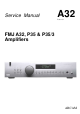 A32 General Assembly Parts List E047rs_2 ITEM A B 50 28 31 30 32 33 34 53 29 27 230V L813RC 115V 100V L907TX L870AY L882AY L914CA L914TX L915CA L916CA L917CA L918CA L928AY L937AY WA8511A L894AY L915TX SILVER BLACK DESCRIPTION HANDY REMOTE 3 DIVA/DIVA SERIES CR389 TRANSF A85 100V PHONO PCB A85 POWERAMP PCB DISPLAY TO PRE AMP CABLE ASSY A32 TRANSFORMER DISPLAY TO POWERAMP CABLE ASSY POWERAMP TO HEADPHONE CABLE ASSY PREAMP TO POWERAMP CABLE ASSY PHONO TO PREAMP CABLE ASSY A32 DISPLAY PCB A32 PREAMP PC
