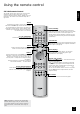 Using the remote control CR-389 Remote Control E nglish The CR-389 remote control gives access to all functions available on the front panel of the A70. It also has controls to operate Arcam CD players, AM/FM tuners and DAB tuners. The remote control transmits Philips RC-5 type codes. TUNER These buttons are used to control tuner functions. Note that the FM/DAB lights indicate into which mode you are switching the remote control. The lights only illuminate for five seconds to conserve battery power.