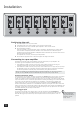 Installatie IN OUT IN BALANCED IN OUT IN BALANCED IN OUT IN BALANCED IN OUT IN BALANCED IN OUT IN BALANCED IN OUT IN BALANCED IN POWER ON/OFF OUT BALANCED IN SLOBLO FUSE A B C A B C 7 RS BACK A B C 6 R SURR A B C 5 RIGHT A B C 4 CENTRE A B C 3 LEFT A B C 2 L SURR 1 LS BACK 12V TRIGGER IN POWER INLET 230V Positioning the unit < < < < Zet de versterker op een vlakke, stevige ondergrond. Zet de eenheid niet in direct zonlicht of in de buurt van een bron van hitte of vocht.