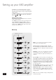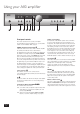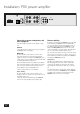 English Using your P80 power amplifier P80 POWER AMPLIFIER SP1 SP2 1 POWER (and power indicator light) 2 Switches the unit on and off. The light indicates the status of the amplifier. When you switch your amplifier on, the light glows amber for a few seconds, during which time the speakers are disconnected. The light changes to green when the amplifier is ready for use. A red light means the amplifier is in standby mode.