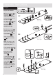 Assembly Instructions Step 23 Prepare 4 rails B D x4 Insert 2 large locking nuts B into 4 of the rails .17 . B 17 Tap 2 wooden dowels D into 4 of the rails 17 . D Step 24 Prepare the other rail Insert 2 large locking nuts B into the rail 17 . B x1 Tap 1 wooden dowel D into the rail 17 . B 17 D Step 25 Fit the 5 rails Push the 5 rails 17 onto the divider 9 . Use a screwdriver to tighten the large locking nut B fitted to each of the 5 rails 17 .