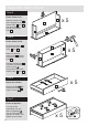 Assembly Instructions Step 4 Fit the drawer base 7 11 Slide the drawer base 9 down the grooves in the drawer sides 6 and 7 then down into the groove in the drawer front 5 . 9 6 x5 5 Step 5 J J Fit the drawer back Fit the drawer back 8 between the drawer sides 6 and 7 . Make sure that the drawer base 9 fits into the groove in the drawer back 8 . 8 7 9 J J x5 6 6 Hold the drawer back 8 in position and tap the knock-in pegs J through the holes in the drawer sides 6 and 7 .
