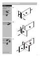 Assembly Instructions Step 1 Attaching runners and hinges a: 2 Holes upside 2 4 A A A a: Position the Left out- J side runners J in from front edge of the Left panel 2 and Middle panel 2 . J A Use Screws A to fix the Left outside runners J onto the Left panel 2 and Middle panel 4 . A A J 2 Pilot holes for runner position 4 2 A A Pilot holes for runner position J A 4 b: Position the Right out- side runners L in from front edge of the Right panel 1 and Middle right panel 3 .