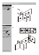 Assembly Instructions Step 1 - continued c: Screw Locking pins into the Left panel 2 . E c: E Note: Insert locking pins E as far as shown. Do not over tighten. B E Use Screws B to fix the Door hinges I ‘back plates’ onto the Left panel 2 . H B I Insert Dowels H into the Left panel 2 and Middle panel 4 . I 2 I H H d: Screw Locking pins E into the Right panel 1 . B d: 4 E E Note: Insert locking pins as far as shown. Do not over tighten.