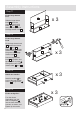 Assembly Instructions Step 1 Prepare the 2 small drawer fronts Screw 2 metal dowels A into each of the small drawer fronts 8 . A A A Note: Tighten the metal dowels up fully against the panels. x2 8 Step 2 Prepare 2 pair of drawer sides Insert a small locking nut C into the hole shown on the left drawer side 10 and the right drawer side 11 . C C C 11 10 x2 x2 Note: The arrow on the locking nut must point towards the hole in the edge of the panel.