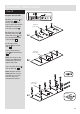Assembly Instructions Step 16 J Prepare the right side M a: Place 4 runners M on the right side 2 as shown. Slide back the top of runner and use the 2nd hole from the front to fit the 1st screw J . b: Slide the runner M back the other way and fit the 2nd screw J into the corresponding hole in the right side 2 . J J 2 J a: J M M M M Finished front edge c: Screw 8 metal dowels A into the right side 2 . J J Insert 2 large locking nuts B into the right side 2 .