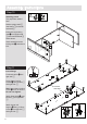 Assembly Instructions Step 16 Inserting drawers a: b: C a: Pull runners out.Slide drawers onto runners so they butt up against back of drawer front. 2 1st small threaded hole b: Fix through drawer sides into runners using 9mm screwsC . Step 17 Inserting hanger rails Place hanger rails U and V onto hanger rail supports M. U SV M Step 18 Fitting hinges to doors Fix three hinge door Q to each door 4 and mirror door small % using 15mm screws D. Attach door handles T using 30mm screws B.