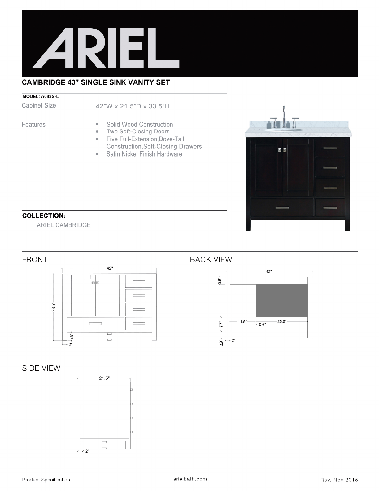 Cambridge 43 in. Bath Vanity in White with Marble Vanity Top in Carrara White with White Basin