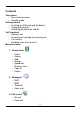 Contents Your phone • Keys and connectors • Standby mode Getting started • Installing the SIM card and the battery • Charging the battery • Switching the phone on and off Call functions • Making a call • Answering or rejecting an incoming call • Call waiting • Handling more than one call Menu functions 1. Phone book • • • • • • • • Detail Search Add Groups Speed dial Memory status Copy all Delete 2. Messages • • • • SMS MMS Template Voice mail 3.