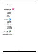 • • • • • Outgoing Clear Call Call duration Call cost Data Counter 4. Setting • • • • • • • • Time & Date Melody Display Language Network Call setting Security Reset all 5. Profile • • • • Normal Meeting Outdoor My profile 6. Camera/ Video • • • • • Camera indications Photo Multi-shot Frame effect Video 7.