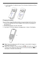 2. Install the battery (4) and back cover (5) on the back of the phone until you hear a click. (5) (4) Charging the battery You must fully charge the battery before using your phone for the first time. 1. Connect the lead from the travel adapter to the socket on the bottom of your phone (A). 2. Connect the charger to an AC wall outlet. 3. It can take 5-15 minutes before a charging icon is shown in the display.