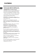 WARNING AU During use the appliance becomes hot. Care should be taken to avoid touching heating elements inside the oven. WARNING: Ensure that the appliance is switched off before replacing the lamp to avoid the possibility of electric shock. ! When you place the rack inside, make sure that the stop is directed upwards and in the back of the cavity . WARNING: Unattended cooking on a hob with fat or oil can be dangerous and may result in fire.