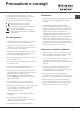 Precautions and tips ! The appliance was designed and manufactured in compliance with international safety standards. The following warnings are provided for safety reasons and must be read carefully. This appliance complies with the following Community Directives: - 73/23/EEC of 19/02/73 (Low Voltage) and subsequent amendments; -89/336/EEC of 03.05.89 (Electromagnetic Compatibility) and subsequent amendments; - 2002/96/CE.