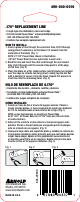 490-040-0016 .170" REPLACEMENT LINE • Tough nylon line dethatches, rakes and scalps • Fits into Arnold Power Rake™ universal dethatching blade 490-100-0056 and 490-100-0083 • Contains two complete replacement sets HOW TO INSTALL: 1. Insert a piece of line through the outermost hole. Pull it through (using pliers if necessary) so that about 1/3 extends from the underside of the blade. (Fig. 1) NOTE: 21"/22" Power Rake shown in illustrations. (19"/20" Power Rake has two nylon lines in each end.) 2.