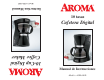 ¡Felicidades! Su cafetera digital de seguro se convertirá en uno de los aparatos más prácticos en su hogar. ¡Disfrute un café filtrado fresco en cualquier momento! Sírvase leer las siguientes instrucciones cuidadosamente antes de usar la cafetera por primera vez. © 2005 Aroma Housewares Company All rights reserved. Aroma Housewares Co. 6469 Flanders Drive San Diego, CA 92121 U.S.A. 1-800-276-6286 www.aromaco.com Published By: Publicado por: Aroma Housewares Co. 6469 Flanders Drive San Diego, CA 92121 EE.
