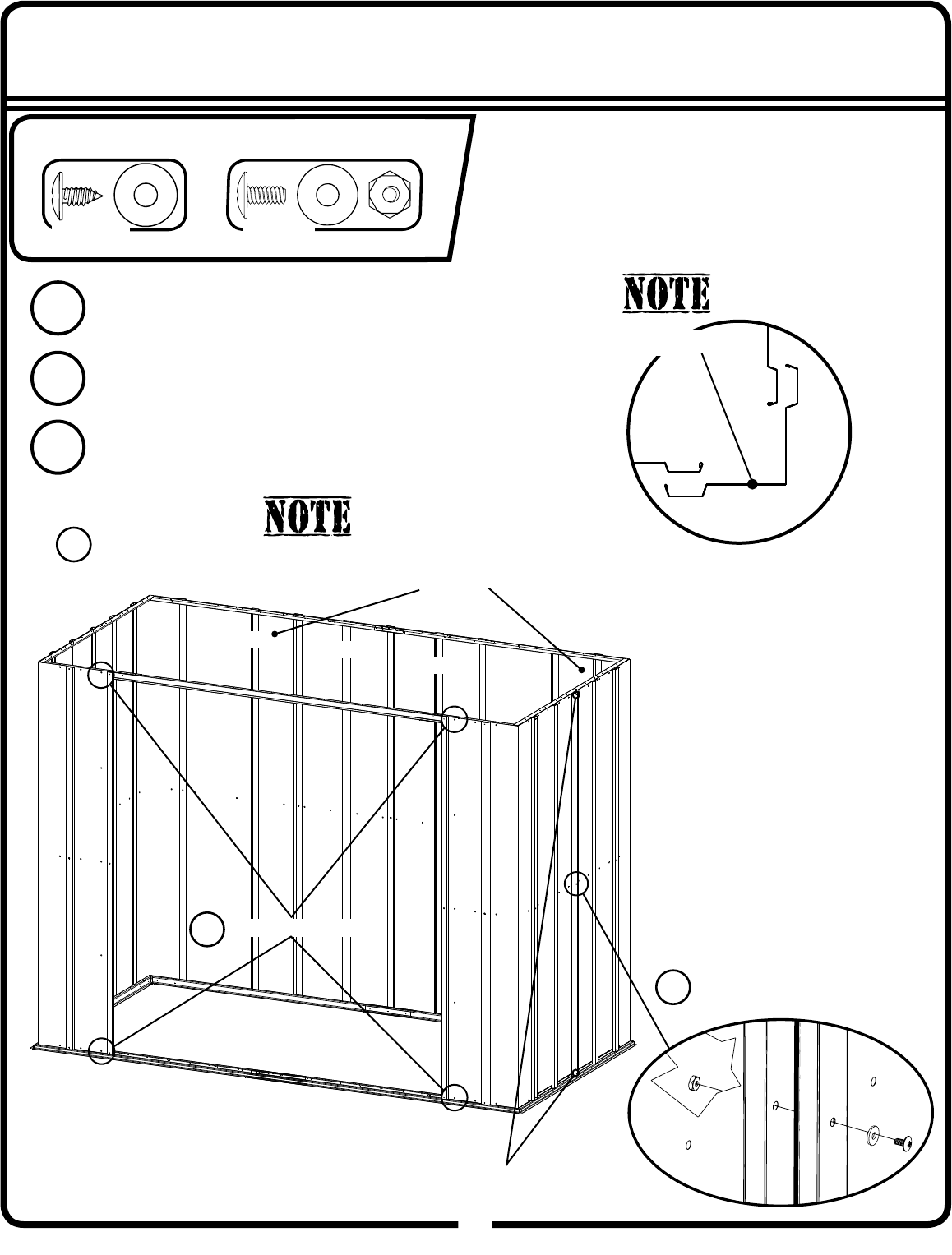 Attach Wall Panels with screws through all holes in top and bottom of Panels.