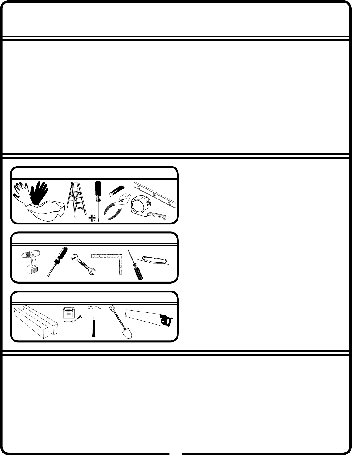 • Before assembling any parts, your base should be constructed and an anchoring system should be ready to use.