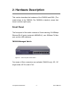 2. Hardware Description This section describes the hardware of the FM2008 and 2009. (The model shown is the FM2009. The FM2008 is identical, except that there is no fiber uplink port.) Front Panel The front panel of the switch consists of 8 auto-sensing 10/100Mbps Ethernet RJ-45 ports (automatic MDI/MDI-X), one 100Base-FX fiber port, and the LED indicators. FM2009 Managed Switch Figure 2-1.
