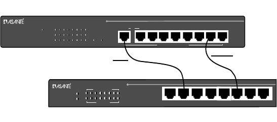 Figure 2-10 Connecting a hub without an uplink port to the Switch