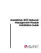 AsantéHub 2072 Network Management Module Installation Guide Introducing the Network Management Module The Asanté 2072 Network Management Module (NMM) provides overall network management for the AsantéHub 2072 or NetStacker hub. By plugging the module into any one of the expansion slots in the chassis, the NMM works with the AsantéView network management software to monitor and control AH2072 NMM or NetStacker modules, gather statistics, monitor network traffic, and set alarm thresholds.