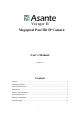 Packaging Contents The Asante Voyager-II PT IP Camera is provided with the following accessories. Please contact your dealer if any one of the following is missing. 1. Megapixel PT IP Camera 2. 12V DC power cable 3. Tripod 4. Audio cable 5. Quick guide 6.