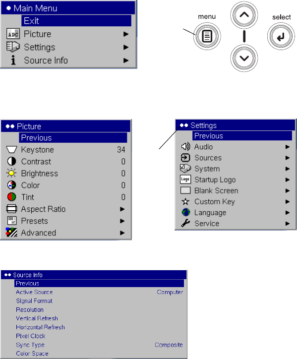 menus automatically close after 60 seconds if no buttons are pressed.) The