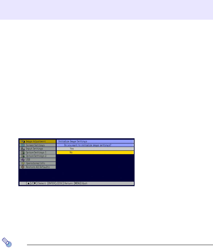 menu or all of the settings on the setup menu to their initial factory defaults.