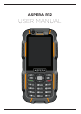 CONTENTS: WELCOME THANK YOU FOR PURCHASING ASPERA R12, A WATERPROOF, DUSTPROOF MOBILE PHONE. PLEASE READ CAREFULLY THIS USER MANUAL BEFORE STARTING TO USE YOUR PHONE. 01 SAFETY INSTRUCTIONS 3 02 OVERVIEW 6 03 PREPARATIONS BEFORE USING 9 3.1 Install SIM card / micro SD card / battery 3.2 Passwords 3.3 Charging 3.4 Power on/off 3.5 Earphone 04 BASIC OPERATIONS 9 9 10 10 10 11 4.1 Make a call 4.