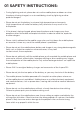 01 SAFETY INSTRUCTIONS: • D uring lightning and rain, please do not use the mobile phone outdoors or when the phone is being charged, so as to avoid being struck by lightning or other potential dangers. • P lease do not put the battery in extreme high-temperature environments (high temperature will make the battery hot), otherwise it may result in fire or explosion.