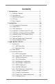 Contents 1 Introduction ....................................................... 5 1.1 1.2 1.3 1.4 1.5 Package Contents ............................................... Speciications ...................................................... Motherboard Layout ............................................ I/O Panel ............................................................. Block Diagram ..................................................... 5 6 9 42 53 2 Installation ..........................................