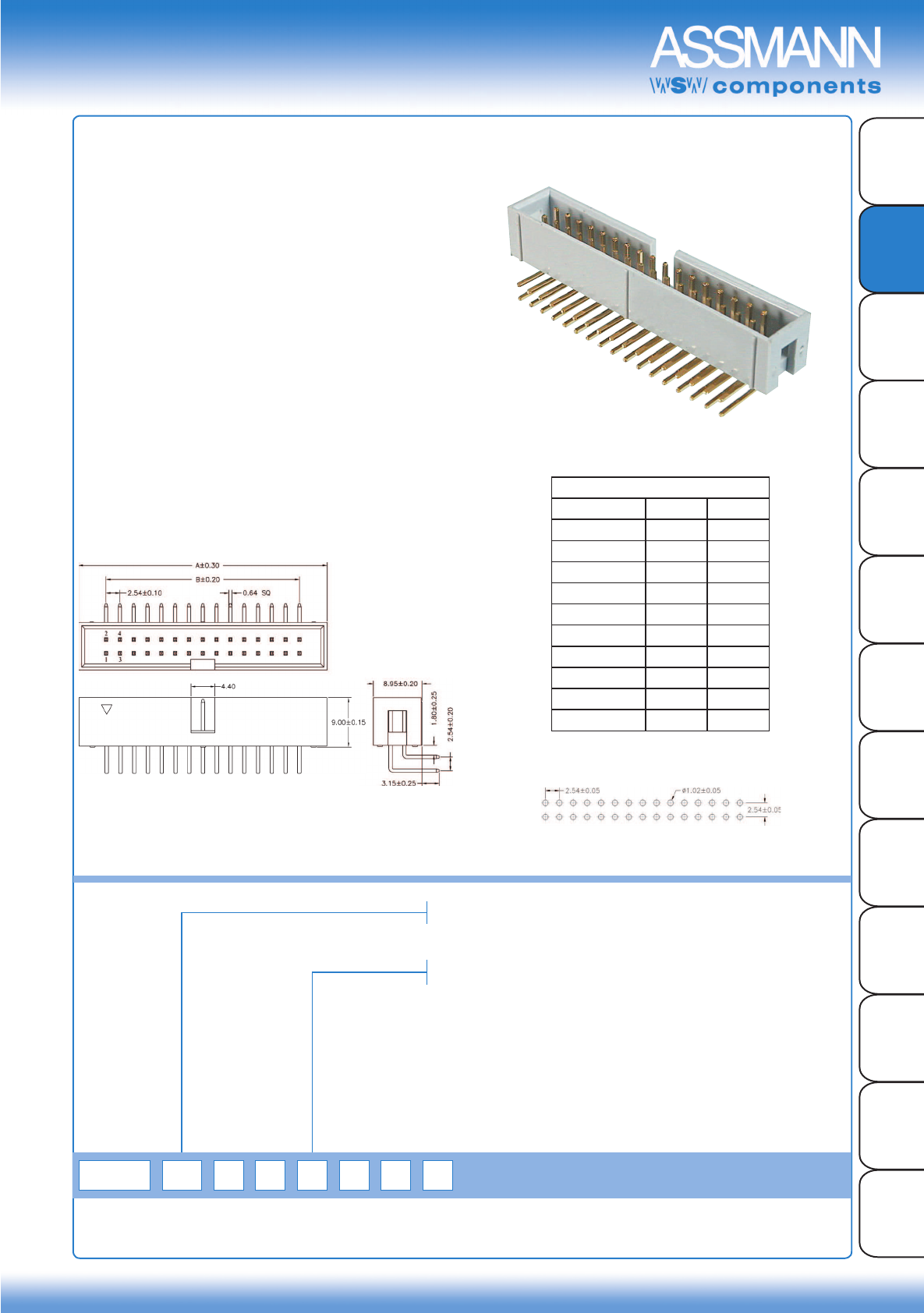 Header, 10 - 64 contacts, right-angled, pitch 2.54mm x 2.54mm