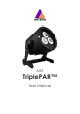Astera LED Technology GmbH User Manual for AX5 TriplePAR™ 2 2017-09-08 PACKAGE CONTENTS • • • • TriplePAR™ Filter FLOOD Filter WALLWASH Quick Start Guide 3 SAFETY AND HANDLING Before you operate this unit read the manual carefully. Always make sure to include the manual if you pass/rent/sell the unit to another user. Keep in mind that this manual cannot address all possible dangers and environments. Please use your own caution when operating. This product is for professional use only.