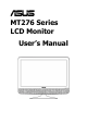 1.1 Welcome! Thank you for purchasing the ASUS® MT Series Multifunction LCD Monitor! The latest LCD monitor from ASUS provides a host of features that enhance your viewing experience. It integrates a number of various media input interfaces to meet your needs on a monitor for working as well as entertainment. With these features, you can enjoy the convenience and delightful visual experience that the MT Series brings you! 1.