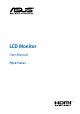 DEAR ASUS CUSTOMER Thank you for your purchase of the ASUS® LCD product. To ensure safety and many years of trouble-free operation of your product, please read the Safety Precautions carefully before using this product. SAFETY PRECAUTIONS Electricity is used to perform many useful functions, but it can also cause personal injuries and property damage if improperly handled. This product has been engineered and manufactured with the highest priority on safety.