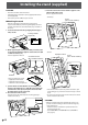 Installing the stand (supplied) nHeight/angle adjustment • Adjusting the height Adjust to a height that is easy to view. Approx. 5-29/32inch (15cm) NOTE: • The height cannot be adjusted in a vertical installation. • Adjusting the angle Adjust to an angle that is easy to view. Approx.25° Approx.5° Approx.45° Approx.45° CAUTION! • When moving the monitor, be sure to grasp only the frame. Grasping and applying pressure to the LCD panel may damage it. • Take care not to pinch your fingers.