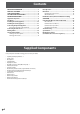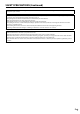 Part Names nFront view 1. LCD panel 2. Power LED (See page 15.) 1 2 nRear view 1 2 4 13 14 15 16 17 18 19 5 6 7 8 9 10 11 1. 2. 3. 4. 5. 6. 7. 8. 9. 10. 11. 12. Speakers Vents Attachment plate (for stand) RS-232C input terminal (See page 12.) PC/AV HDMI 1 input terminal (See page 12.) PC/AV HDMI 2 input terminal (See page 12.) DisplayPort input terminal (See page 12.) Audio input terminal (See page 12.) Headphone terminal (See page 12.) AC input terminal (See page 13.