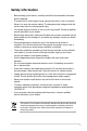 Safety information • Before setting up the monitor, carefully read all the documentation that came with the package. • To prevent fire or shock hazard, never expose the monitor to rain or moisture. • Never try to open the monitor cabinet. The dangerous high voltages inside the monitor may result in serious physical injury. • If the power supply is broken, do not try to fix it by yourself. Contact a qualified service technician or your retailer.