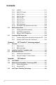 Contents 4.4 4.3.8 System Information........................................................ 4-15 4.4.1 JumperFree Configuration............................................. 4-16 4.4.3 CPU Configuration......................................................... 4-22 Advanced menu.......................................................................... 4-16 4.4.2 4.4.4 4.4.5 4.5 4.4.6 4.5.3 ACPI 2.0 Support........................................................... 4-26 4.5.6 APM Configuration..
