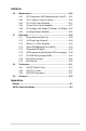 Contents 1.9 1.10 Onboard LEDs............................................................................. 1-32 Software support......................................................................... 1-33 1.10.1 Installing an operating system....................................... 1-33 1.10.3 Intel® SBA support . ....................................................... 1-34 1.10.2 Support DVD information............................................... 1-33 BIOS information 2.