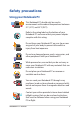 4. 5. 6. My battery charge indicator does not light up. What’s wrong? • Check whether the power adapter or battery pack is attached correctly. You may also disconnect the power adapter or battery pack, wait for a minute, then reconnect them again to the power outlet and Notebook PC. • If the problem still exists, contact your local ASUS service center for assistance. Why is my touchpad not working? • Press to enable your touchpad.