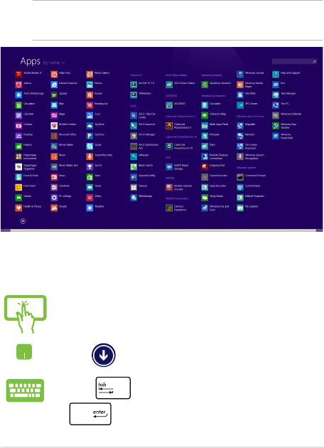Start Apper-skjermen ved å bruke den bærbare PC-ens berøringsskjerm,
