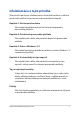 Infalebomácie o tejto príručke Táto príručka poskytuje infalebomácie o funkciách hardvéru a softvéru prenosného počítača a zostavená je do nasledujúcich kapitol: Kapitola 1: Nastavenie hardvéru Táto kapitola podrobne opisuje hardvérové komponenty prenosného počítača. Kapitola 2: Používanie prenosného počítača Táto kapitola vám ukáže, ako používať rôzne časti prenosného počítača. Kapitola 3: Práca s Windows® 8.1 Táto kapitola poskytuje prehľad o používaní systému Windows ® 8 v prenosnom počítači.