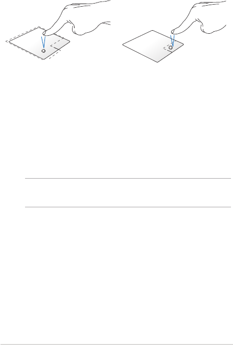 vasaknupu ja hiire paremnupu asukohti puuteplaadil.