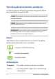 Par šo rokasgrāmatu Šajā rokasgrāmatā sniegta informācija par piezīmjdatora aparatūras un programmatūras funkcijām, kas aprakstītas tālākajās nodaļās. 1. nodaļa. Aparatūras uzstādīšana Šajā nodaļā aprakstīti piezīmjdatora aparatūras komponenti. 2. nodaļa. Piezīmjdatora lietošana Šajā nodaļā aprakstīts, kā lietot dažādas piezīmjdatora daļas. 3. nodaļa. Darbs ar operētājsistēmu Windows® 8.1 Šajā nodaļā sniegts pārskats par piezīmjdatora operētājsistēmas Windows® 8.1 lietošanu. 4. nodaļa.