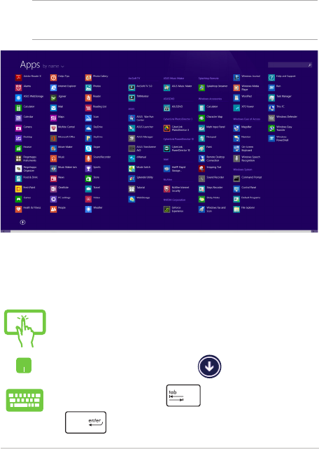 Rakenduste akna saate avada sülearvuti puuteekraani, puuteplaadi või