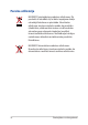 Drošības pasākumi Piezīmjdatora lietošana Šo piezīmjdatoru drīkst lietot tikai vietās, kur apkārtējā temperatūra ir no 5°C (41°F) līdz 35°C (95°F). Skatiet strāvas parametru uzlīmi piezīmjdatora apakšā un pārliecinieties, lai strāvas adapteris atbilstu parametriem. Neatstājiet piezīmjdatoru klēpī vai uz citām ķermeņa daļām, lai novērstu sakaršanas radīto diskomfortu vai traumas. NELIETOT bojātus strāvas vadus, papildierīces vai citas ārējās ierīces.